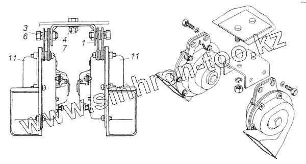 Каталог запасных частей к технике: Камский автозавод 53228, 65111. Установка звуковых электрических сигналов
