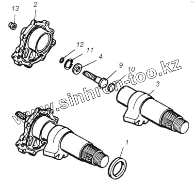 Каталог запасных частей к технике: Камский автозавод 53228, 65111. Вал сошки с крышкой