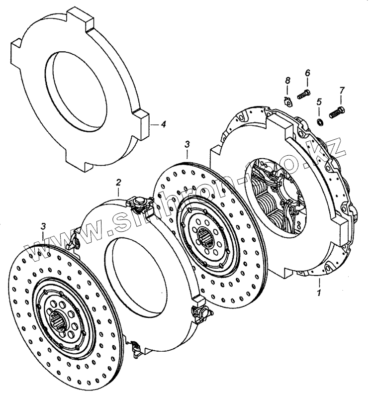 Каталог запасных частей к технике: Камский автозавод 53229 (Евро 2). 142.1600010 Сцепление