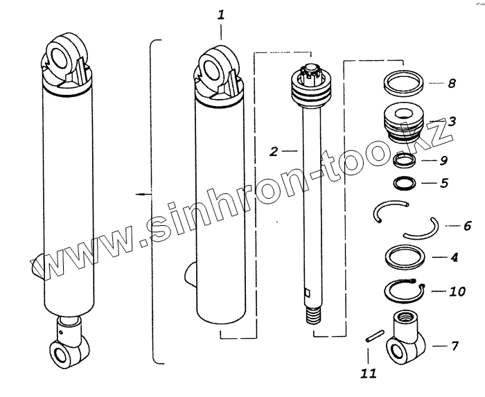Каталог запасных частей к технике: Камский автозавод 53229 (Евро 2). 4310-5003010 Гидроцилиндр