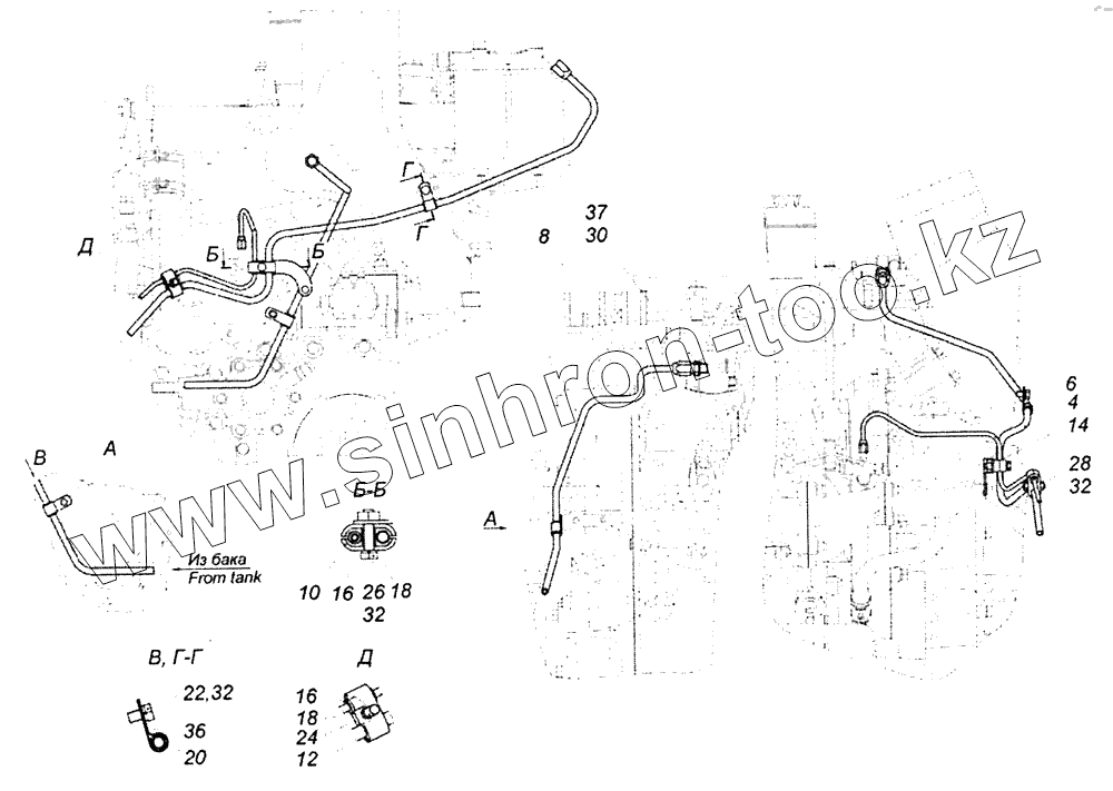 Каталог запасных частей к технике: Камский автозавод 53229 (Евро 2). 43253-1104000 Установка топливопроводов
