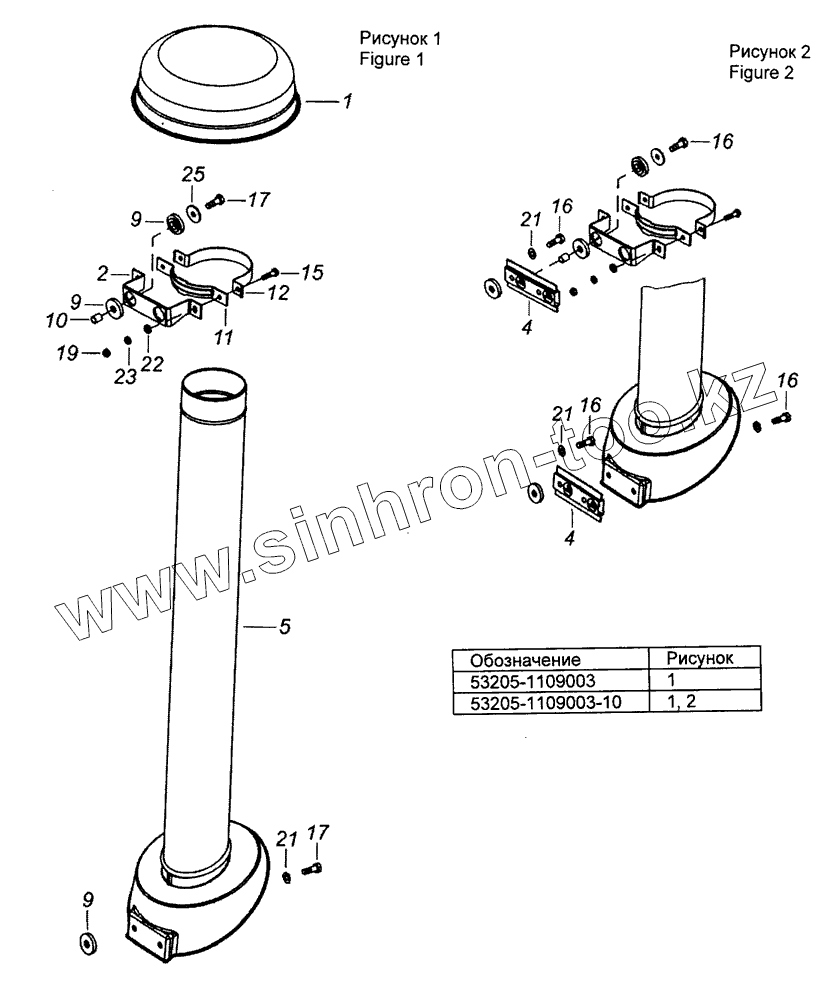 Каталог запасных частей к технике: Камский автозавод 53229 (Евро 2). 53205-1109003 Установка воздухозаборника