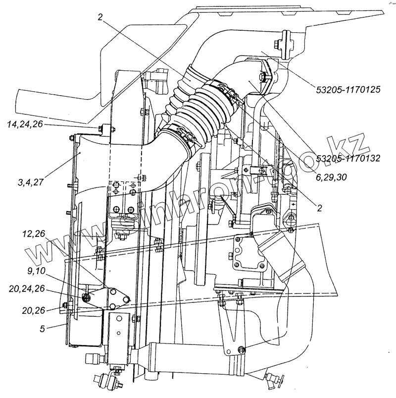 Каталог запасных частей к технике: Камский автозавод 53229 (Евро 2). 53205-1170000 Установка системы OHB