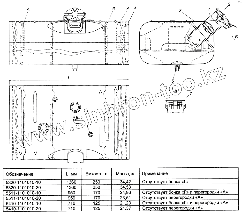 Каталог запасных частей к технике: Камский автозавод 53229 (Евро 2). 5320-1101010-10 Бак топливный