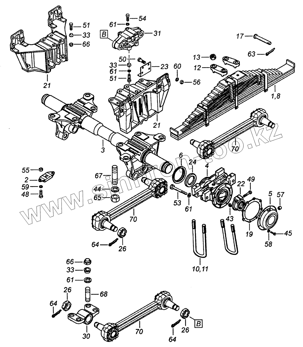 Каталог запасных частей к технике: Камский автозавод 53229 (Евро 2). 5511-2900002 Установка задней подвески