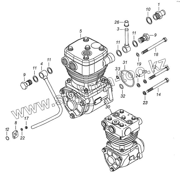 Каталог запасных частей к технике: Камский автозавод 53229 (Евро 2). 7405.3509003 Установка компрессора