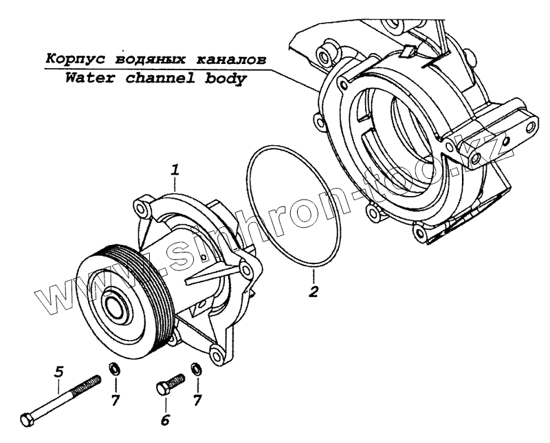 Каталог запасных частей к технике: Камский автозавод 53229 (Евро 2). 7406.1307005 Установка водяного насоса