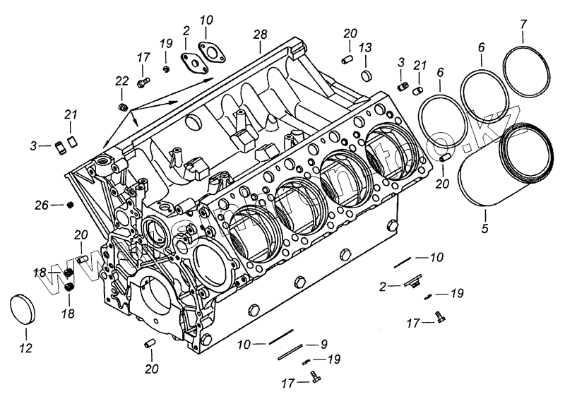Каталог запасных частей к технике: Камский автозавод 53229 (Евро 2). 740.13-1002010 Блок цилиндров