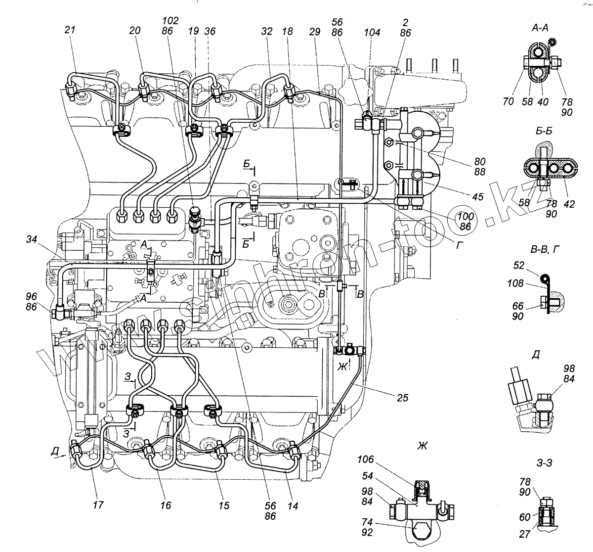 Каталог запасных частей к технике: Камский автозавод 53229 (Евро 2). 740.21-1104000 Установка топливопроводов