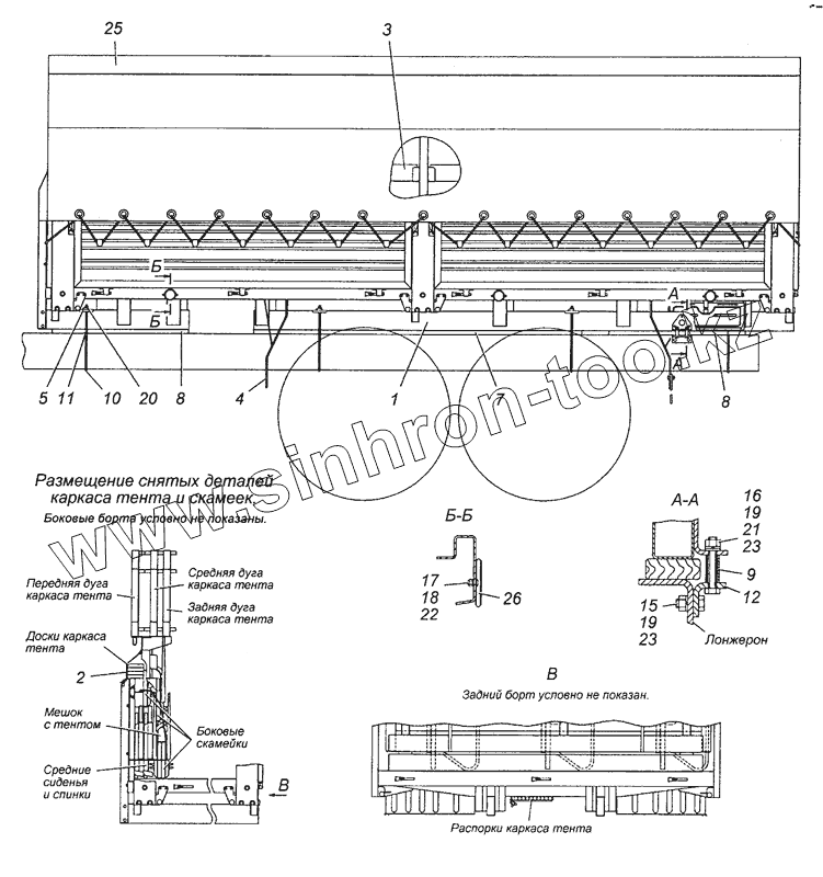 Каталог запасных частей к технике: Камский автозавод 53501 (6х6). 5350-8500008-75 Установка платформы