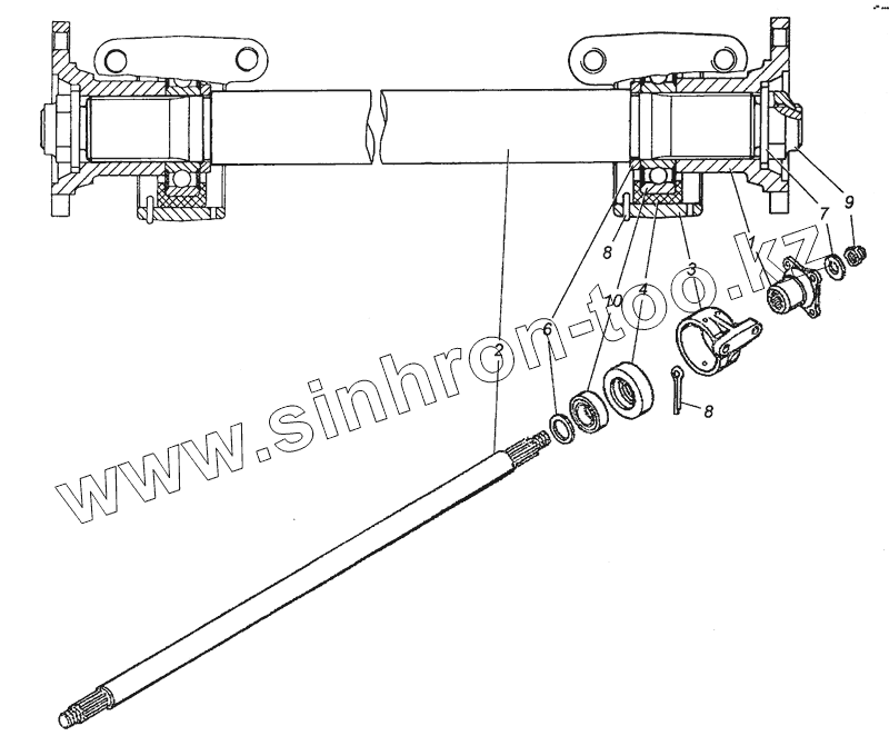 Каталог запасных частей к технике: Камский автозавод 53504 (6х6). 4310-4502210 Вал карданный промежуточный