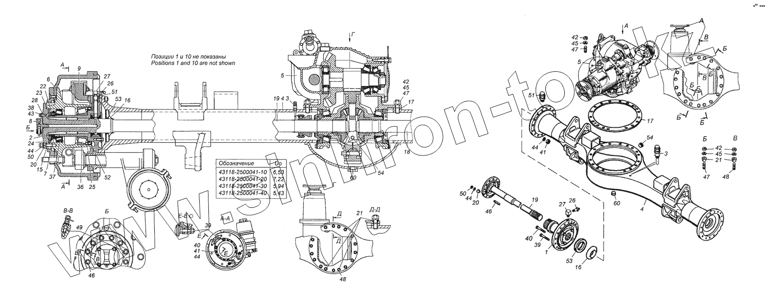 Каталог запасных частей к технике: Камский автозавод 53504 (6х6). 43118-2500041-10 Мост средний