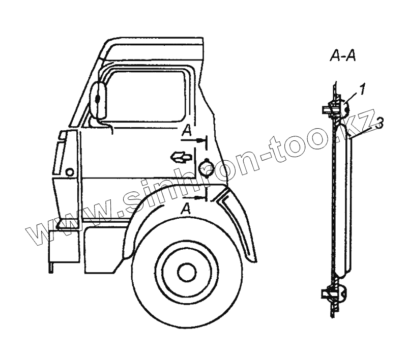 Каталог запасных частей к технике: Камский автозавод 53504 (6х6). 53212-8208001 Установка световозвращателей на кабине