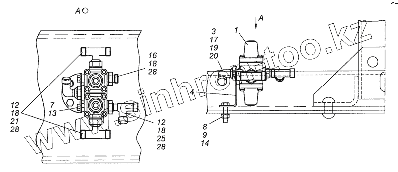 Каталог запасных частей к технике: Камский автозавод 53504 (6х6). 6350-3500015 Установка четырехконтурного защитного клапана