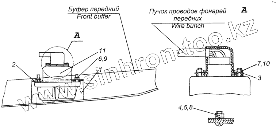 Каталог запасных частей к технике: Камский автозавод 5350 (6х6). 4310-3712001 Установка фонарей передних