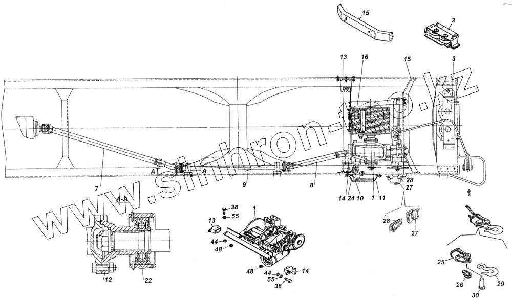 Каталог запасных частей к технике: Камский автозавод 5350 (6х6). 43114-4500010-10 Установка лебедки