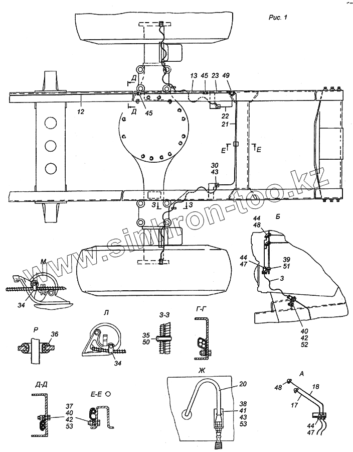 Каталог запасных частей к технике: Камский автозавод 5350 (6х6). 4326-3125001 Установка системы накачки шин