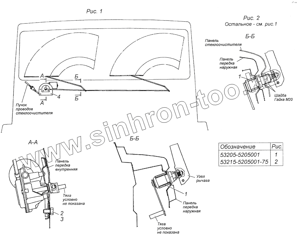 Каталог запасных частей к технике: Камский автозавод 5350 (6х6). 53205-5205001 Установка стеклоочистителя