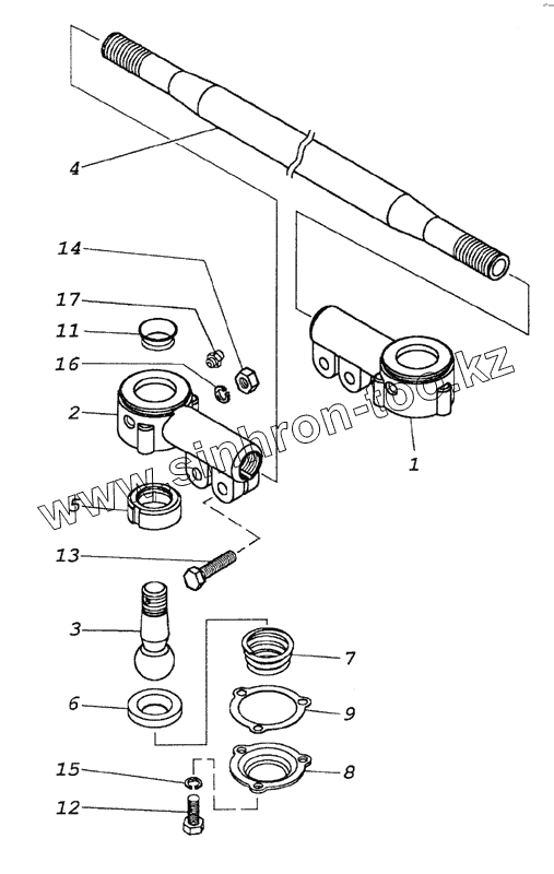 Каталог запасных частей к технике: Камский автозавод 5350 (6х6). 6350-3414130-10 Тяга промежуточная