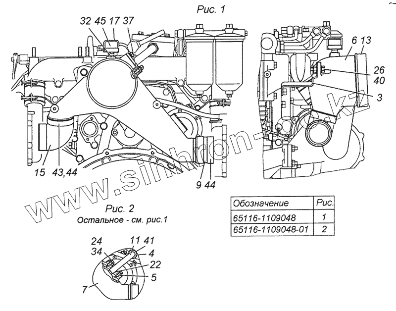 Каталог запасных частей к технике: Камский автозавод 5350 (6х6). 65116-1109048 Установка тройника