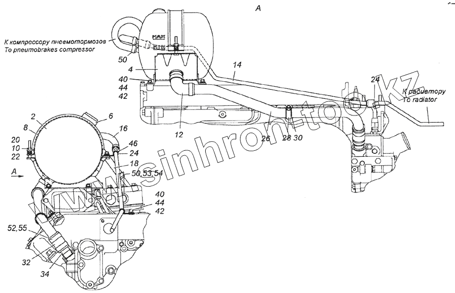 Каталог запасных частей к технике: Камский автозавод 5350 (6х6). 6520-1311005 Установка расширительного бачка