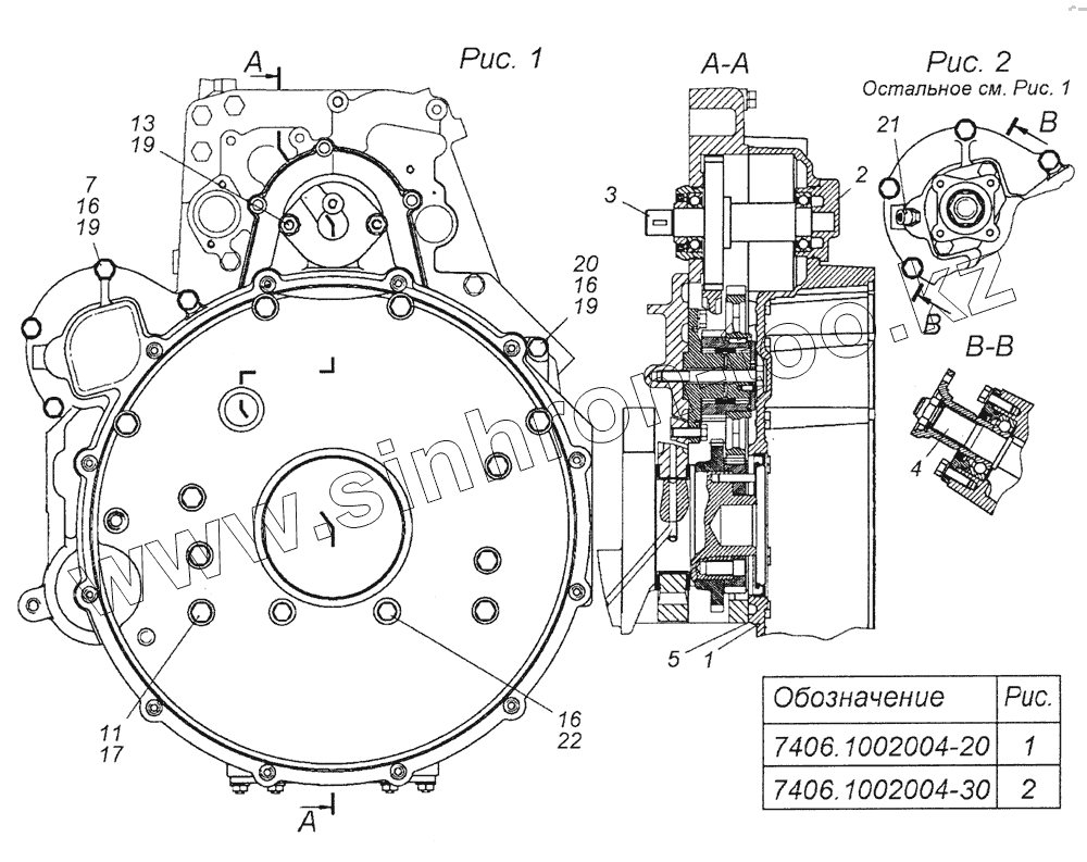 Каталог запасных частей к технике: Камский автозавод 5350 (6х6). 7406.1002004-20 Установка картера маховика