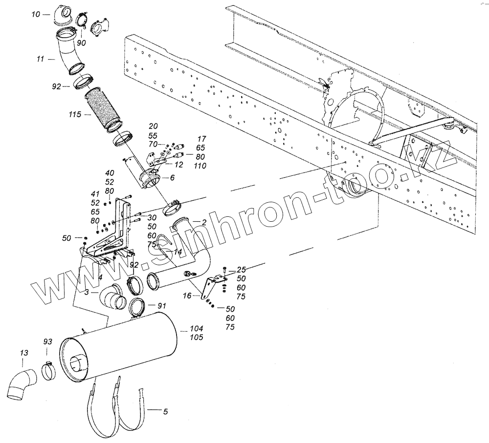 Каталог запасных частей к технике: Камский автозавод 53605 (Евро-4). 53605-1200002 Установка системы выпуска