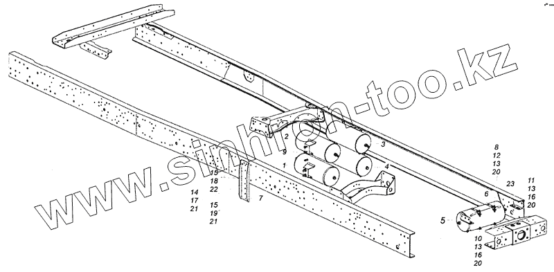 Каталог запасных частей к технике: Камский автозавод 53605 (Евро-4). 53605-3513005-04 Установка ресиверов