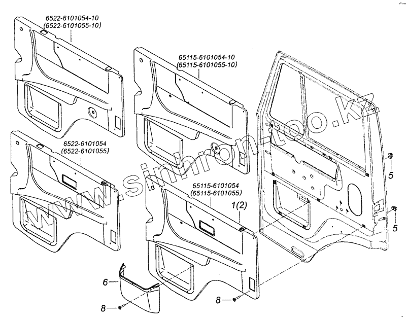 Каталог запасных частей к технике: Камский автозавод 53605 (Евро-4). 65115-6102005 Установка обивок двери