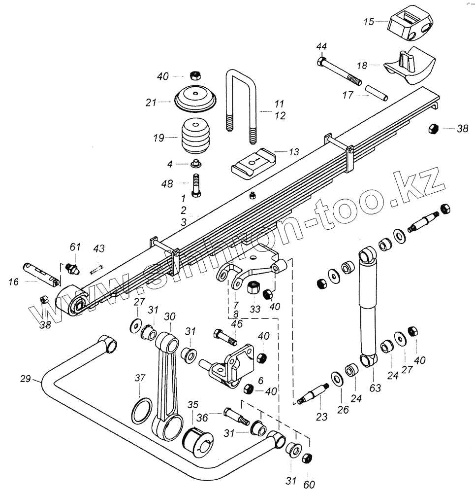Каталог запасных частей к технике: Камский автозавод 53605 (Евро-4). 6520-2900001 Установка передней подвески