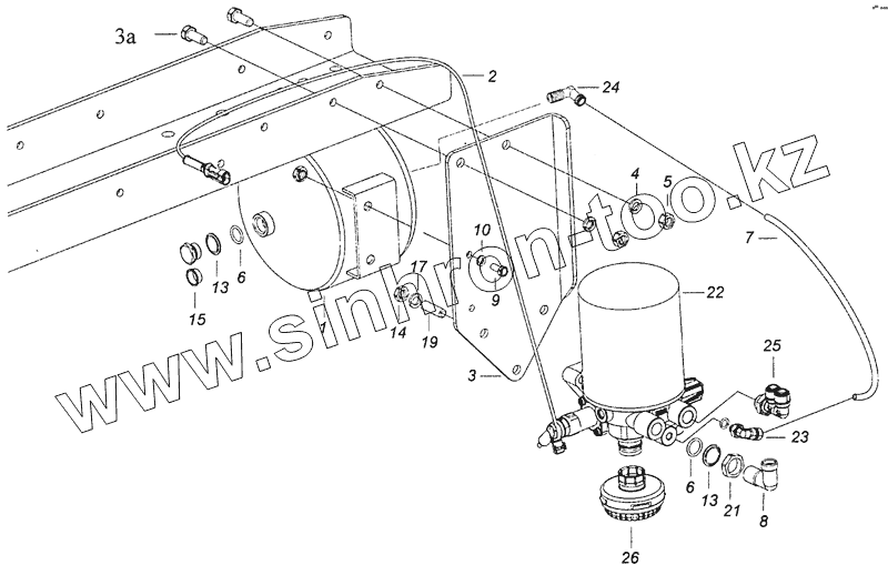 Каталог запасных частей к технике: Камский автозавод 53605 (Евро-4). 6520-3500011-80 Установка осушителя