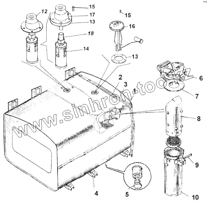 Каталог запасных частей к технике: Камский автозавод 5360. Бак топливный