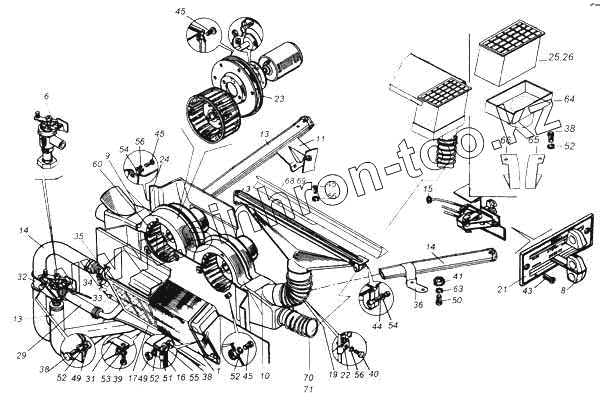 Каталог запасных частей к технике: Камский автозавод 5360. Элементы отопления и вентиляции кабины