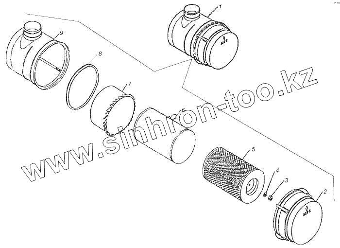 Каталог запасных частей к технике: Камский автозавод 5360. Фильтр воздушный в сборе