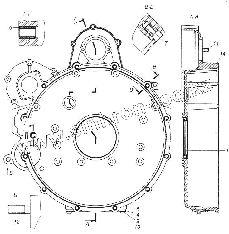 Каталог запасных частей к технике: Камский автозавод 5360. Картер маховика