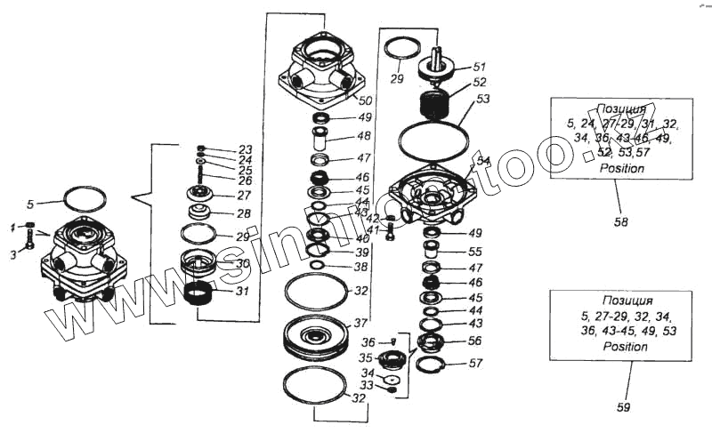 Каталог запасных частей к технике: Камский автозавод 5360. Кран тормозной двухсекционный