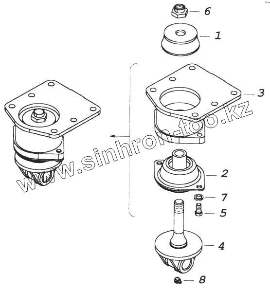 Каталог запасных частей к технике: Камский автозавод 5360. Кронштейн переднего крепления кабины верхний