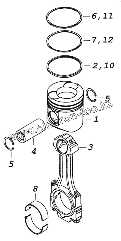 Каталог запасных частей к технике: Камский автозавод 5360. Поршень с шатуном и кольцами