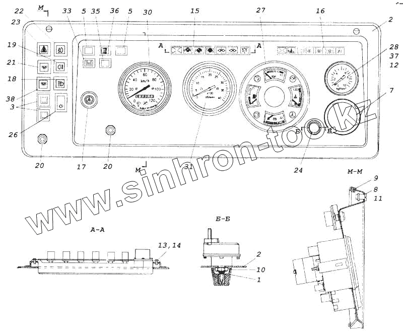 Каталог запасных частей к технике: Камский автозавод 5360. Щиток приборов