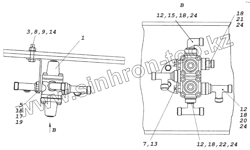 Каталог запасных частей к технике: Камский автозавод 5360. Установка четырехконтурного защитного клапана