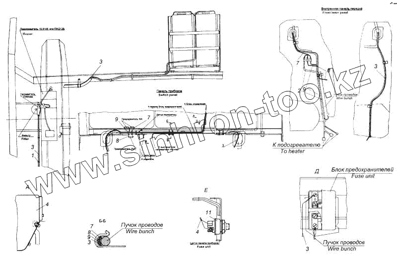 Каталог запасных частей к технике: Камский автозавод 5360. Установка электрооборудования подогревателя и отопителя
