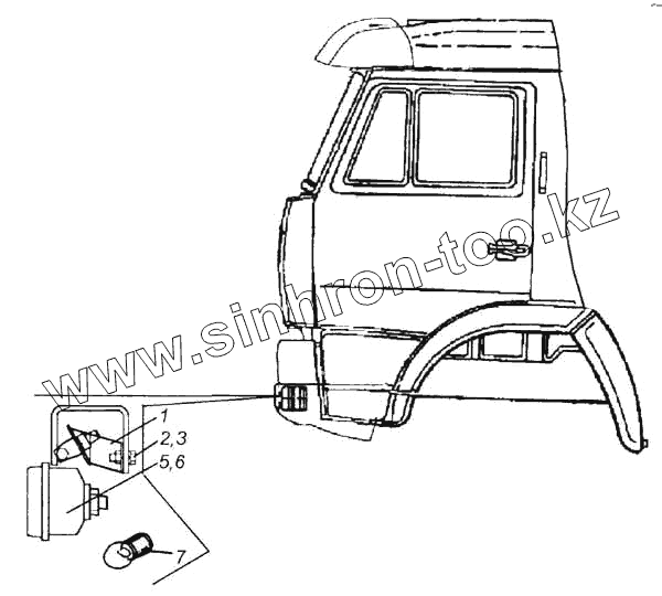 Каталог запасных частей к технике: Камский автозавод 5360. Установка фар дополнительных и противотуманных