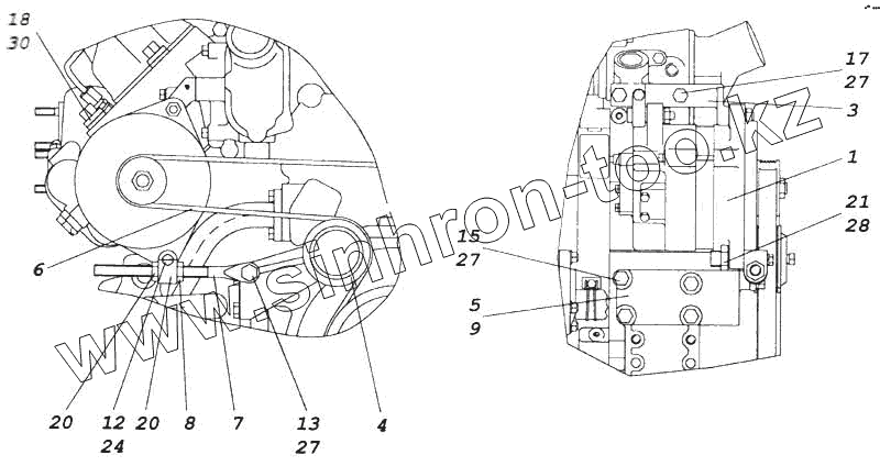 Каталог запасных частей к технике: Камский автозавод 5360. Установка генератора