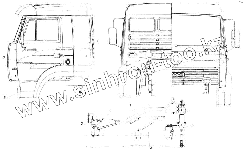 Каталог запасных частей к технике: Камский автозавод 5360. Установка кабины с оперением