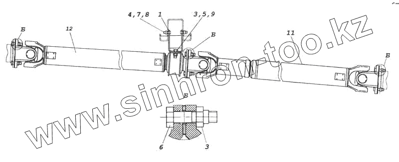Каталог запасных частей к технике: Камский автозавод 5360. Установка карданных валов