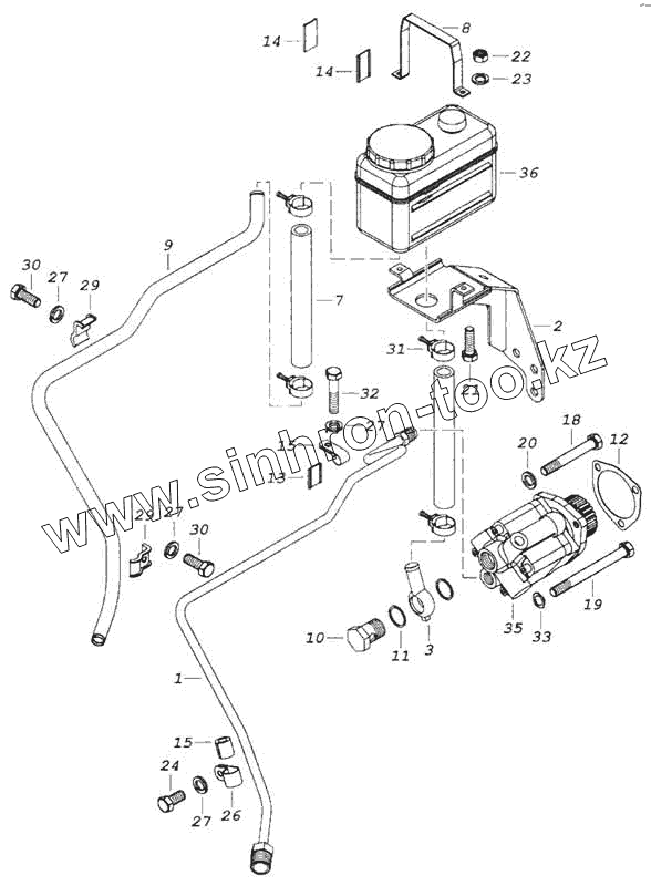 Каталог запасных частей к технике: Камский автозавод 5360. Установка насоса гидроусилителя руля