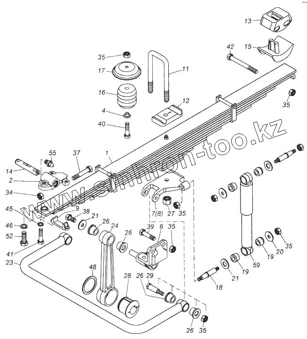 Каталог запасных частей к технике: Камский автозавод 5360. Установка передней подвески