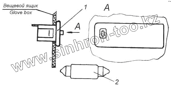 Каталог запасных частей к технике: Камский автозавод 5360. Установка плафона освещения вещевого ящика