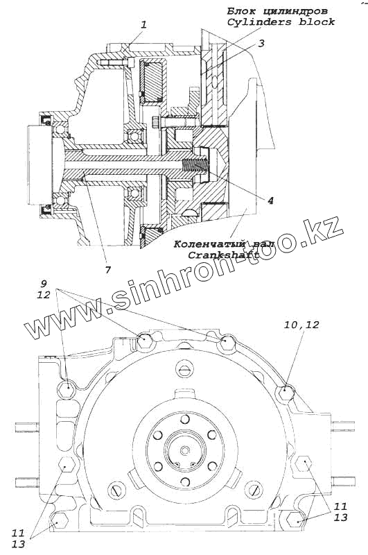 Каталог запасных частей к технике: Камский автозавод 5360. Установка привода отбора мощности переднего