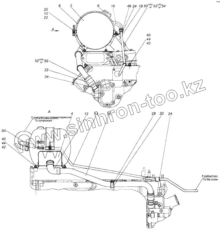 Каталог запасных частей к технике: Камский автозавод 5360. Установка расширительного бачка